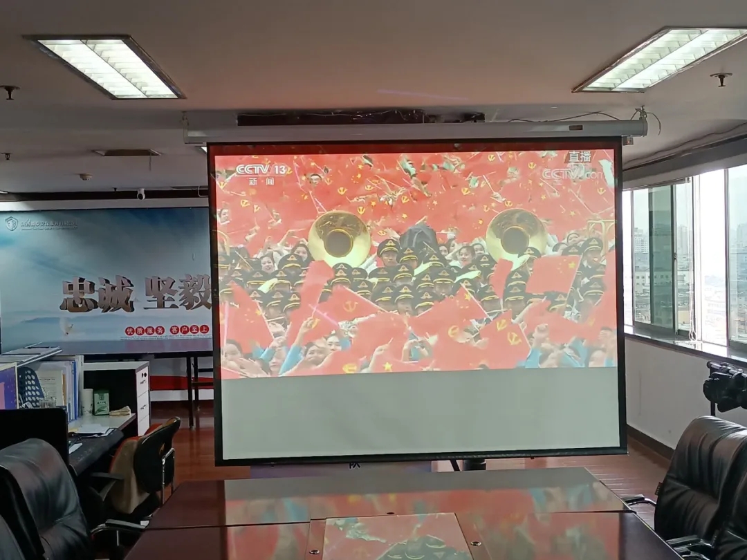警泰安保全體員工觀看慶典轉(zhuǎn)播現(xiàn)場(chǎng)
